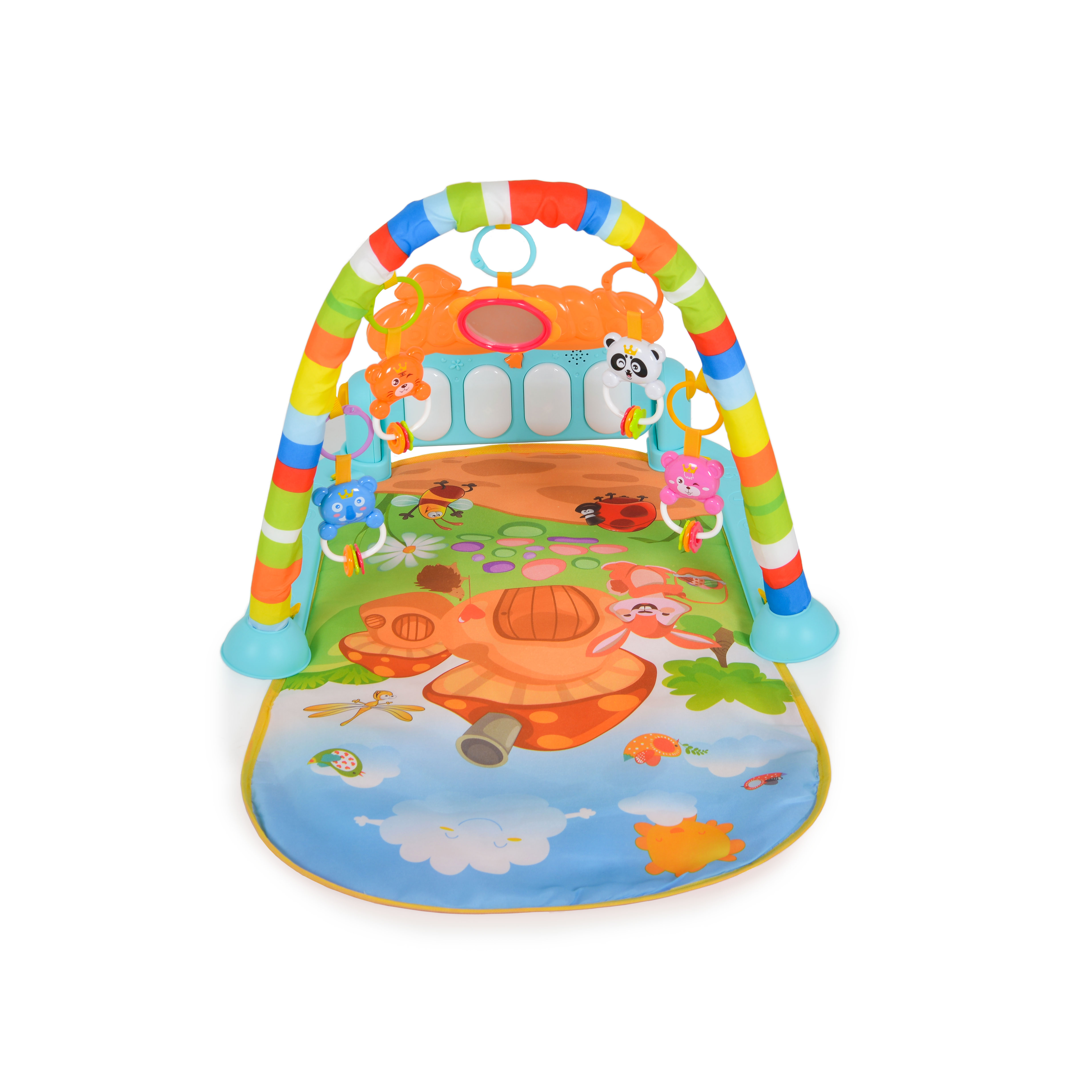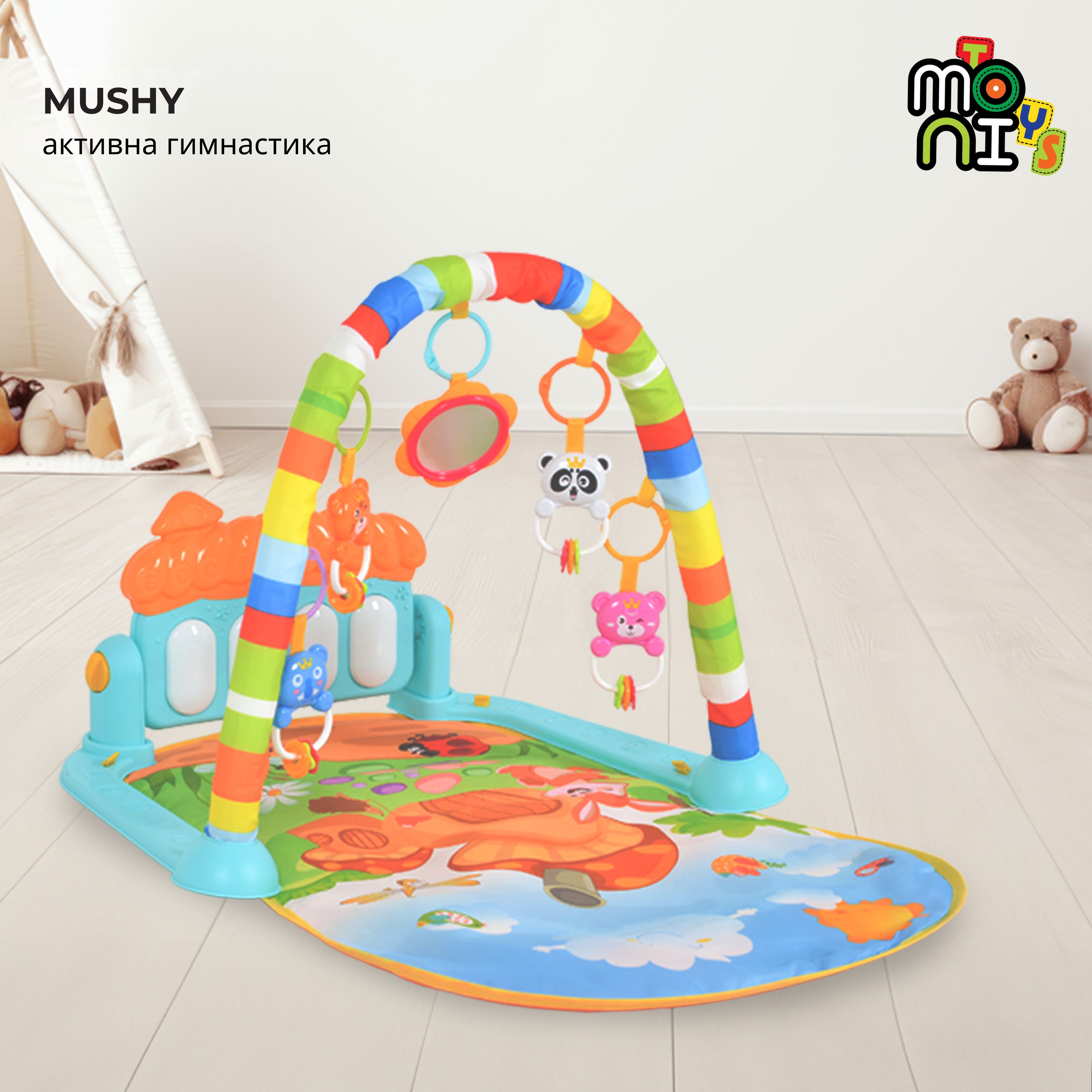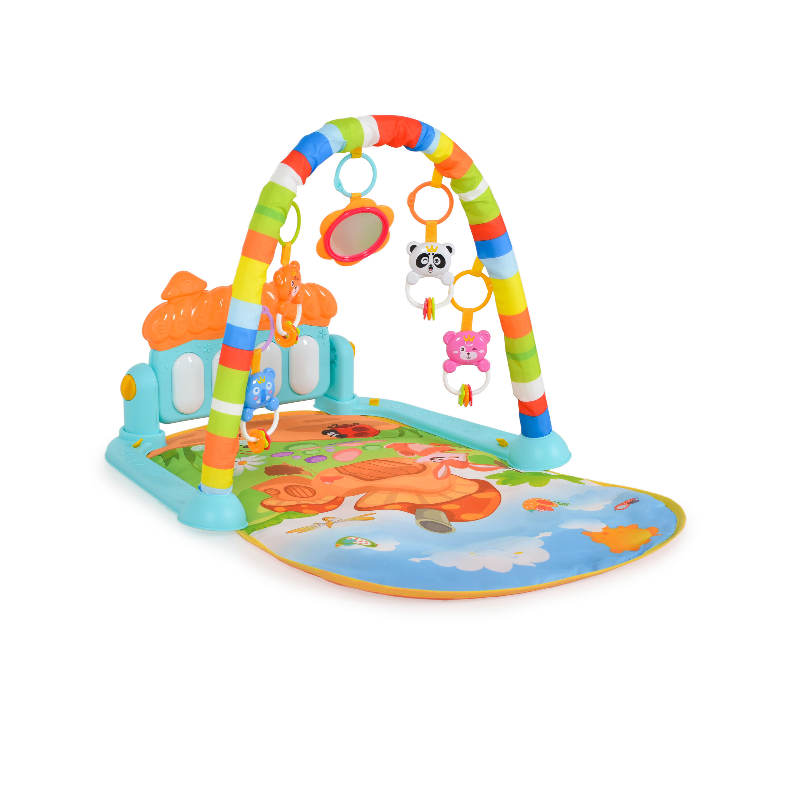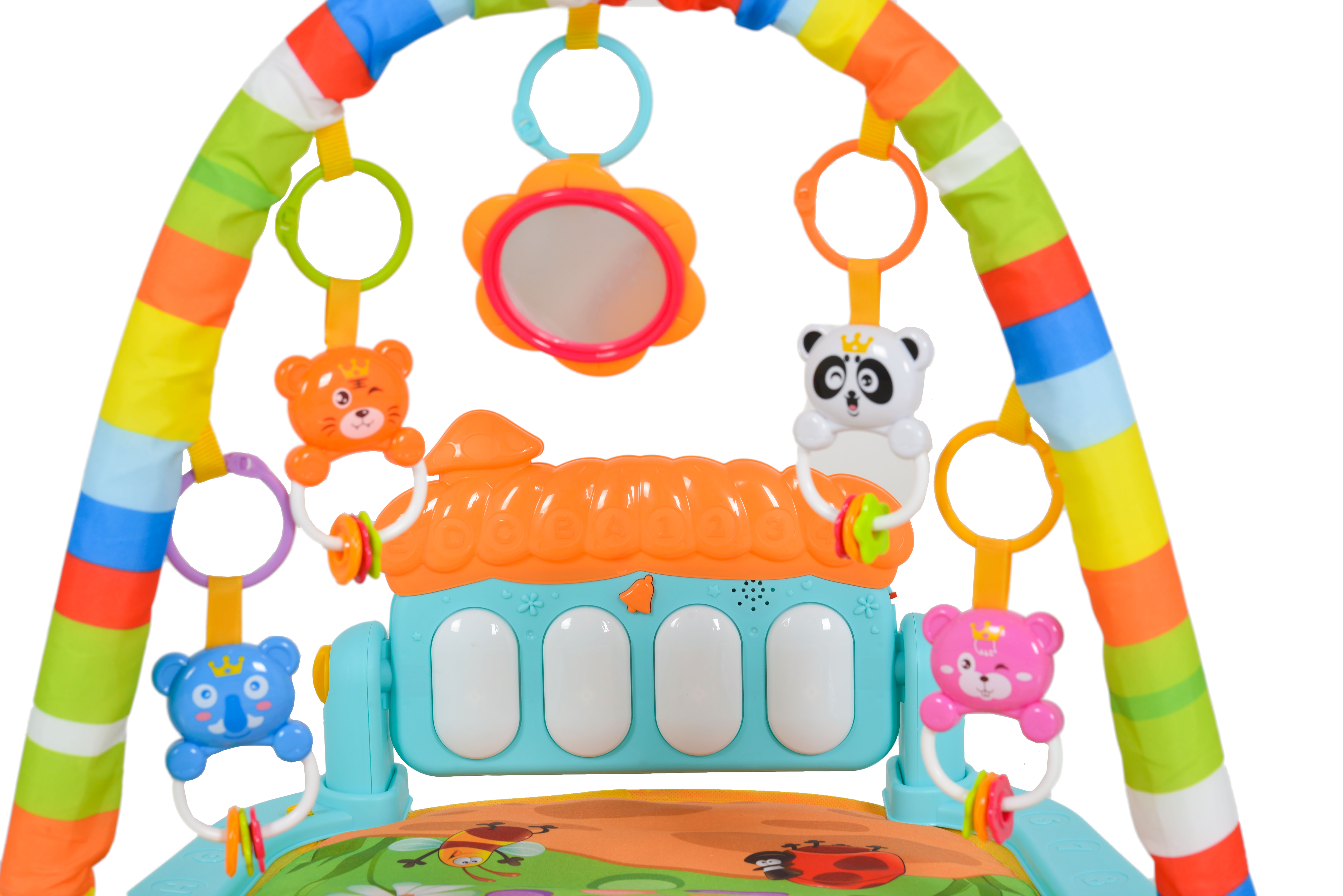 Към продукта са включени няколко играчки, които могат да се окачат по грифовете, и музикалната играчка пиано.