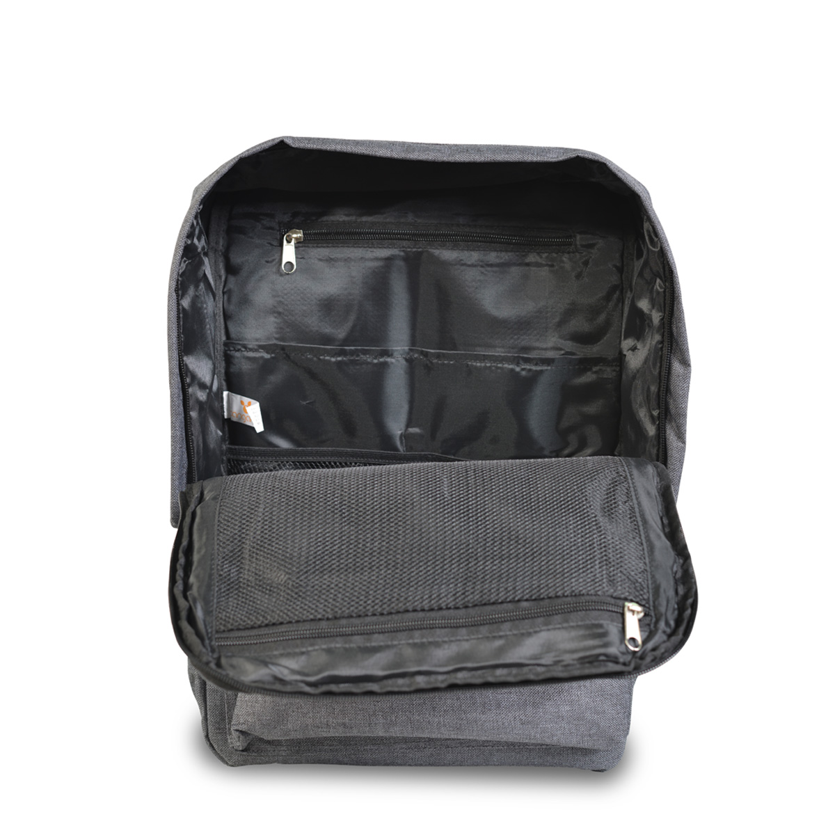 Основно отделение с цип; външни джобчета – предни и странични и вътрешни джобчета за аксесоари.