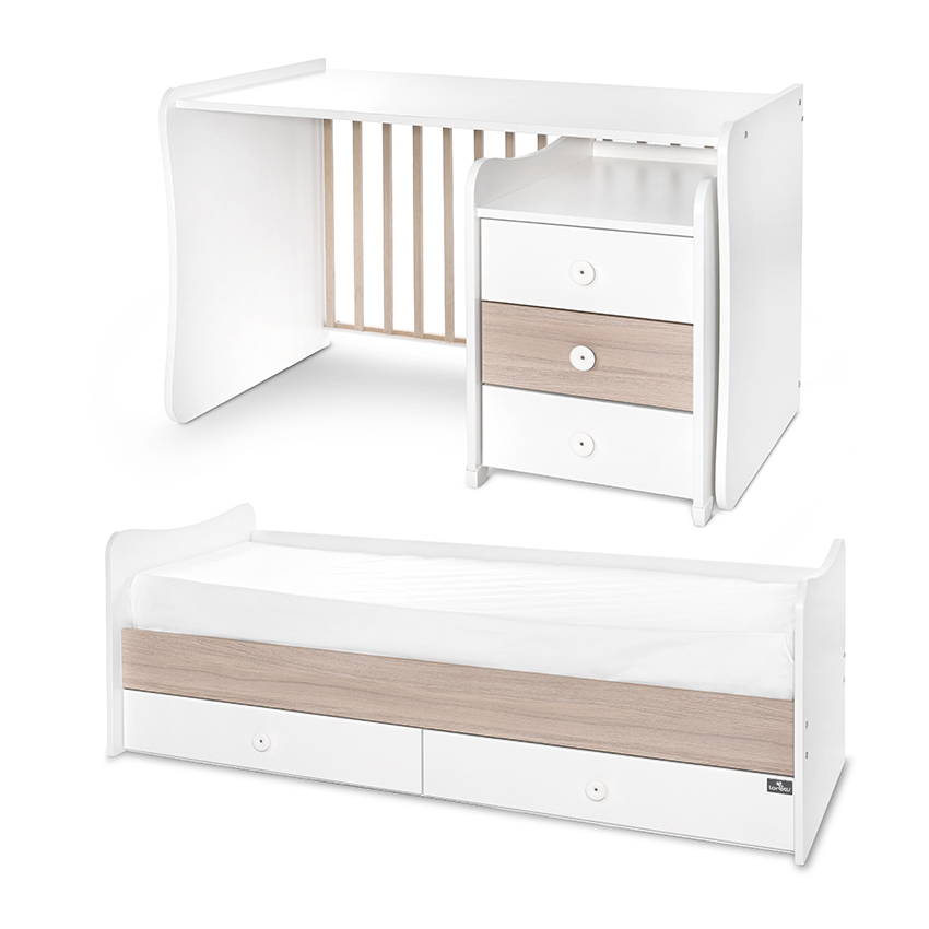 бебешко легло-люлка,леглото се трансформира в:,произведен от 18мм ламинирано ПДЧ /melamine chipboard/ с високо качество,отговаря на всички европейски стандарти за безопасност,висококачествена сглобка за лесен и бърз монтаж,подробна инструкция за сглобяване стъпка по стъпка///