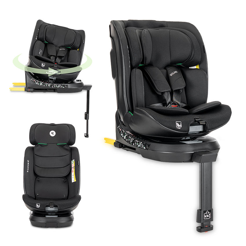 мека подложка за главата,мека подложка за тялото,размери,направляващи водачи за Isofix системата (вкл. в комплекта),регулируема облегалка,ротация на 360 градуса,RWF – инсталация в посока, обратна на движението 40-105см,Система за регулация на предпазните колани спрямо растежа,Противоплъзгащи омекотители на предпазните коланчета,SPS – система за странична защита,FF – инсталация по посока на движението 76-150 см,EPS – за по-голяма сигурност,Лесен монтаж чрез ISOFIX и опорен крак за ръст 40-105 см и с обезопасителен колан за възрастни със или без ISOFIX закрепване за ръст 100-150 см.,Одобрено е съгласно ECE R129/04///
