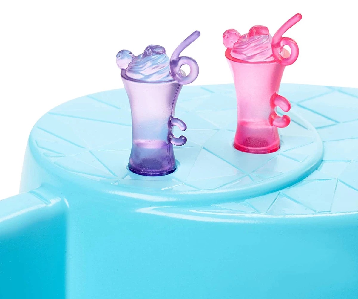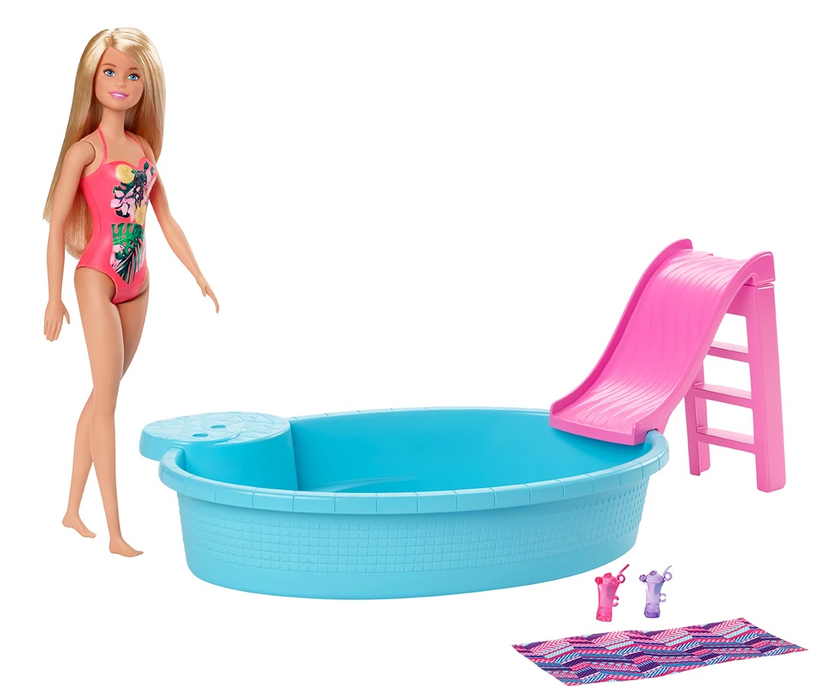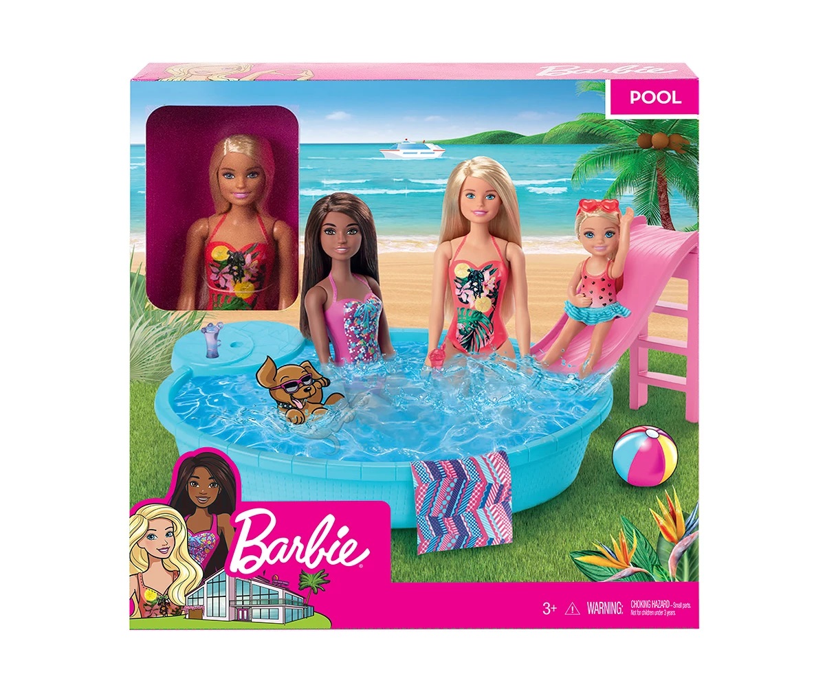Впуснете се в лятното забавление с кукла Barbie и нейния басейн! Лесно се напълва и изпразва, а с място за кукла Barbie и нейните сестри или приятели, това е идеалният басейн за парти! Куклата Barbie може да се плъзне плавно или да скочи в определения кът за сядане. Цветен дизайн, вдъхновяващ стил, а аксесоарите насърчават въображаемия сюжет. Две готини напитки, два холдера за чаши до мястото за сядане и кърпа с пъстър печат помагат да се пресъздаде сцената на перфектния летен ден. Куклата Barbie е готова за басейн в ярък бански костюм със забавни, цветни графики. Представете си колко много летни сцени могат да се разиграят с куклата Barbie и нейния басейн! Съберете други кукли и аксесоари Barbie, за да разширите възможностите за игра (всяка се продава отделно). Куклата не може да плува или да стои самостоятелно. Цветовете и декорациите могат да варират.