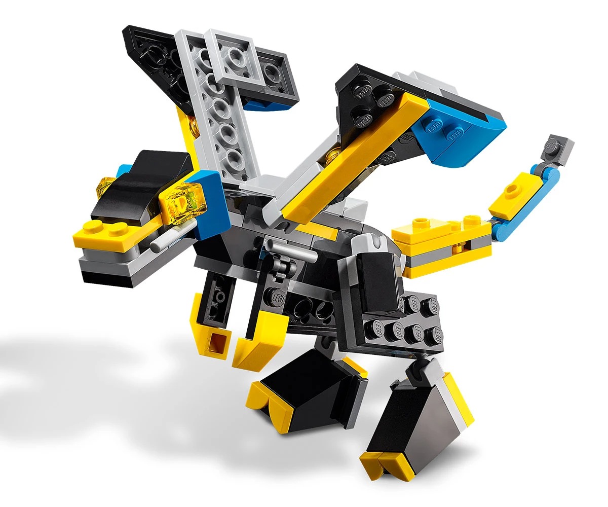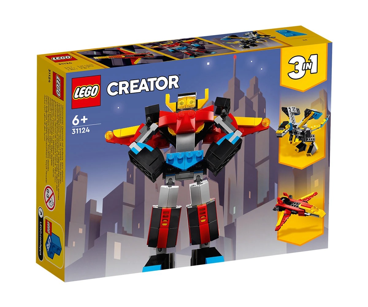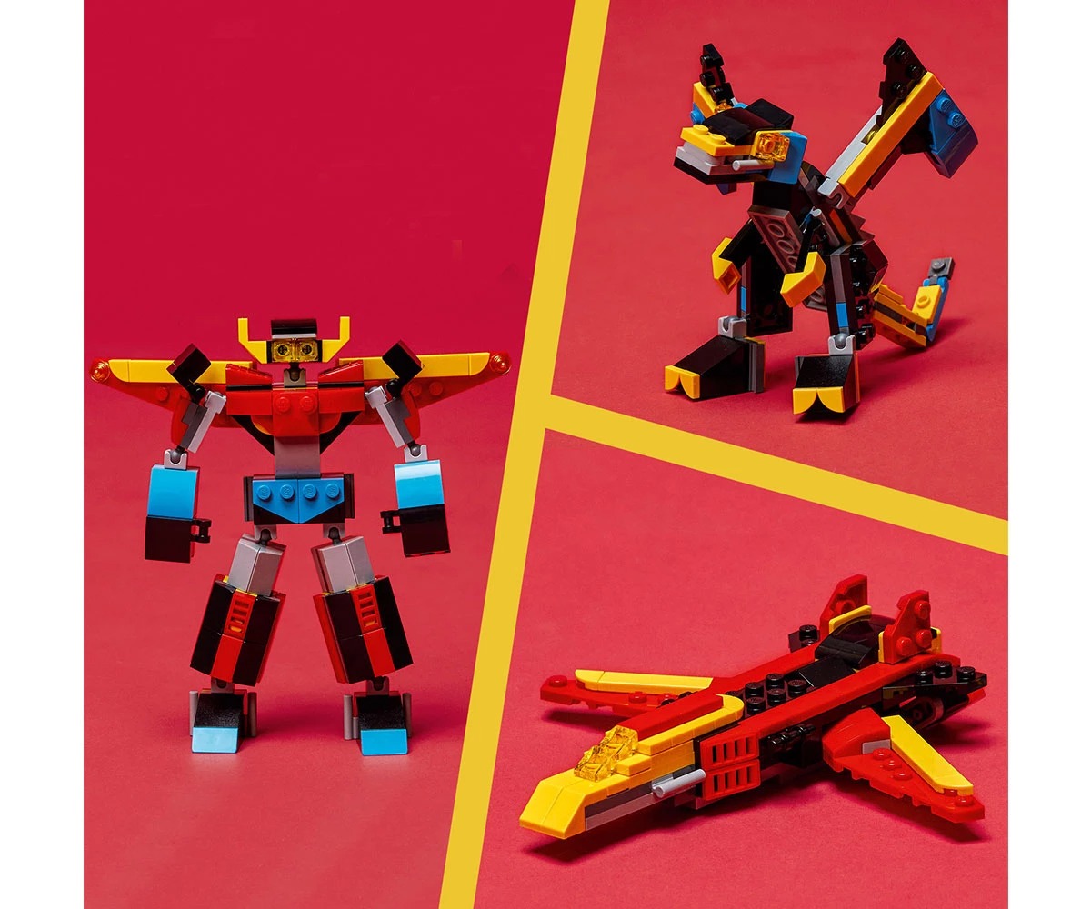 - Играчка „3 в 1“ – Децата ще се забавляват с игри на въображението с този комплект за строителство Супер робот (31124), който съдържа „3 модела в 1“: робот, дракон и реактивен самолет;