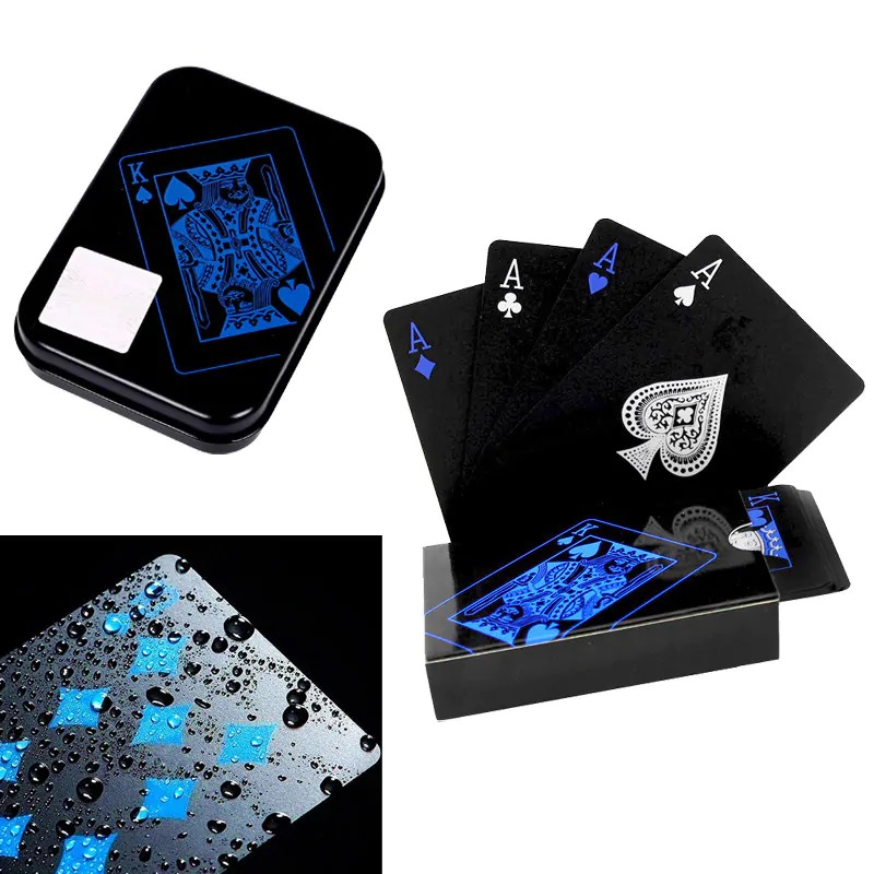 Луксозни черни водоустойчиви PVC карти в метална кутия.