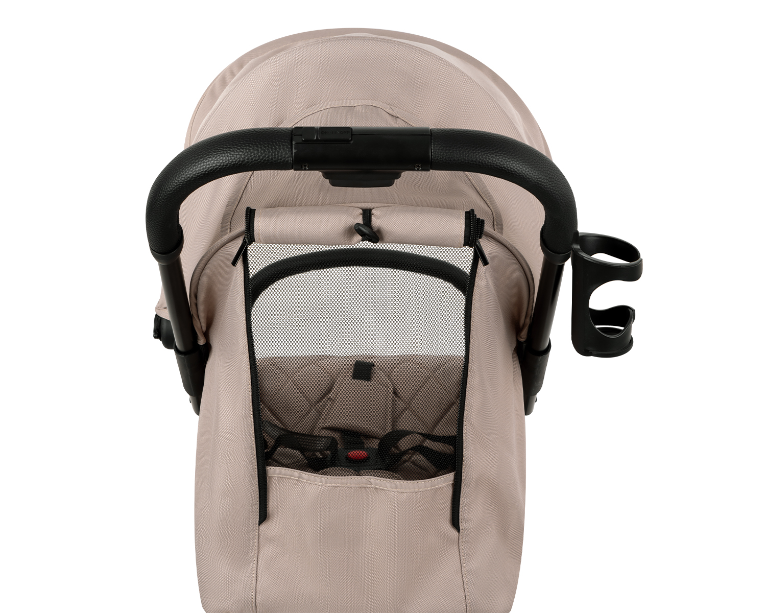 • 5-точков предпазен колан с меки раменни подложки и покритие на долната катарама;