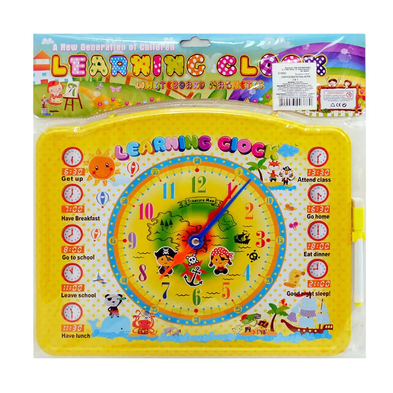 Образователен часовник с дъска за рисуване и маркер 2 в 1 /метал/.