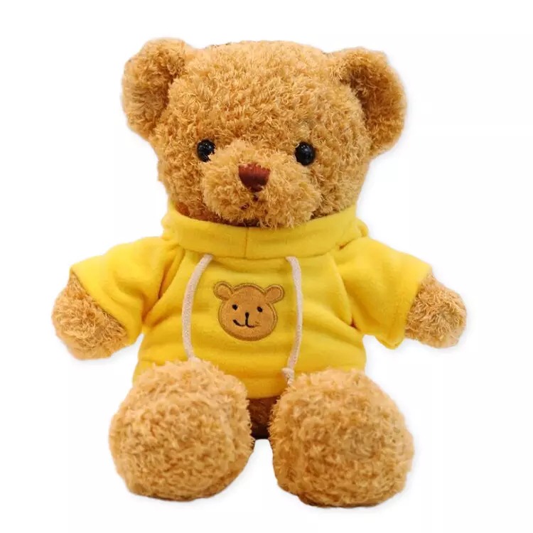 Плюшено мече със жълт пуловер от TeaToys е чудесен подарък, който ще остане за спомен.