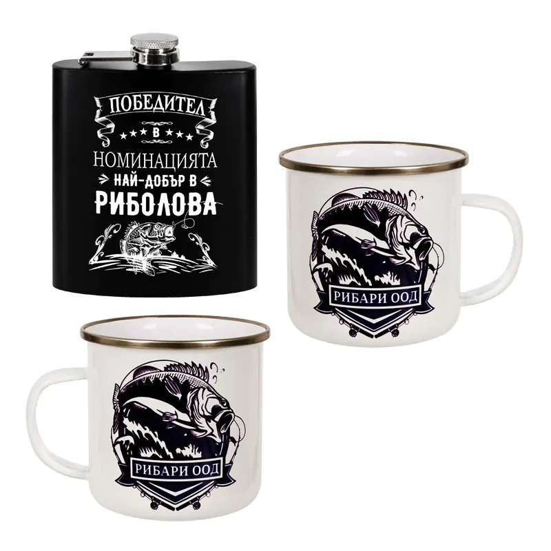 Подаръчен комплект „Рибар“ с метално канче и манерка.