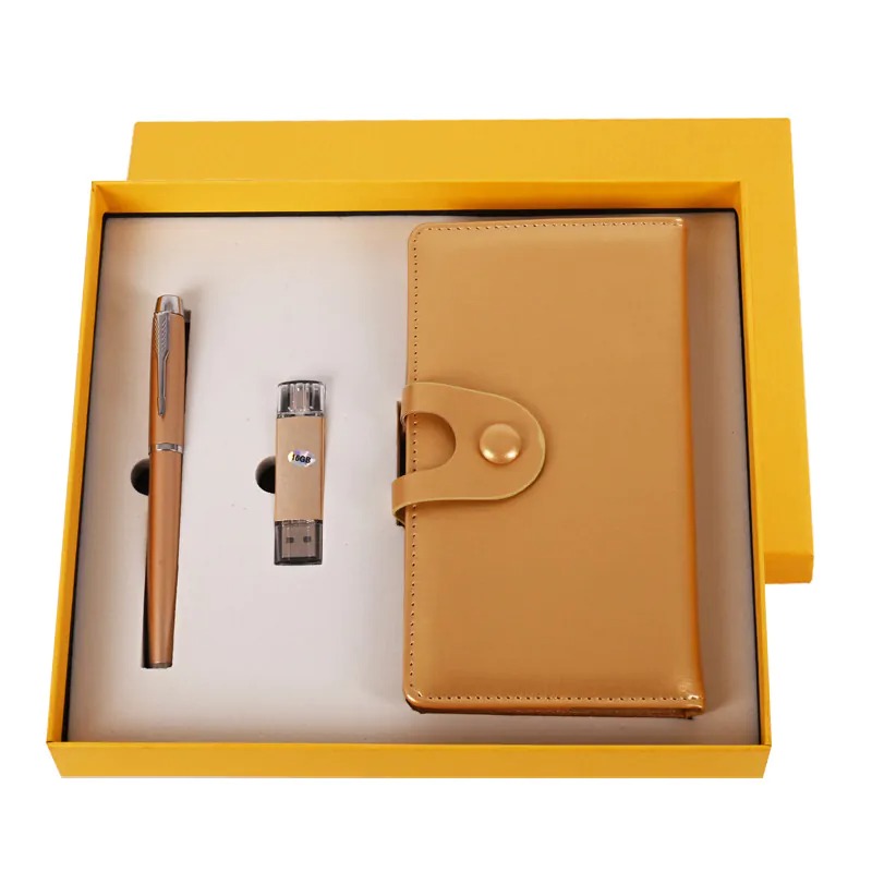 Подаръчен комплект с химикал, бележник и USB + MicroUSB в луксозна кутия