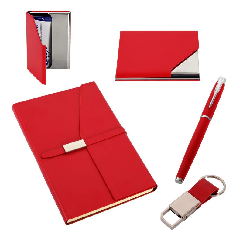Подаръчен комплект „За една успешна Жена“ с химикал, бележник, ключодържател и визитник.