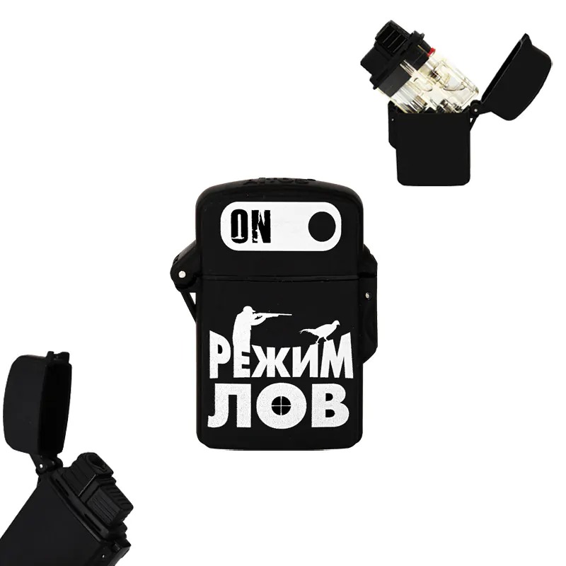 Противовятърна запалка с гумиран корпус, заключващ механизъм и релефен печат, може да се презарежда!