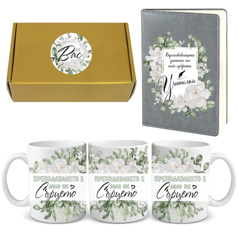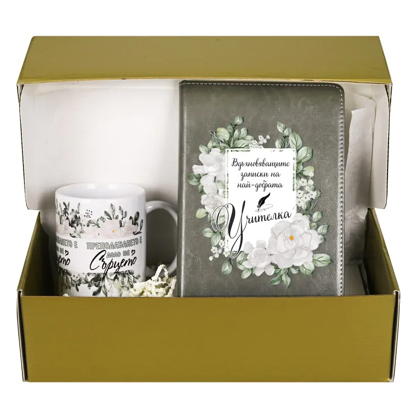 Подаръчен комплект „За Вас“ с бележник и чаша.