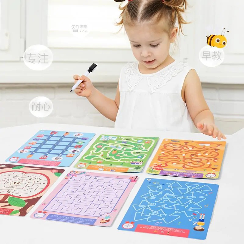 Включени са 25 броя карти с 25 различни лабиринта и изтриваем маркер – тази игра предлага часове забавление и предизвикателства. Забавните лабиринти ще подобрят логическото мислене и уменията за концентрация на децата.