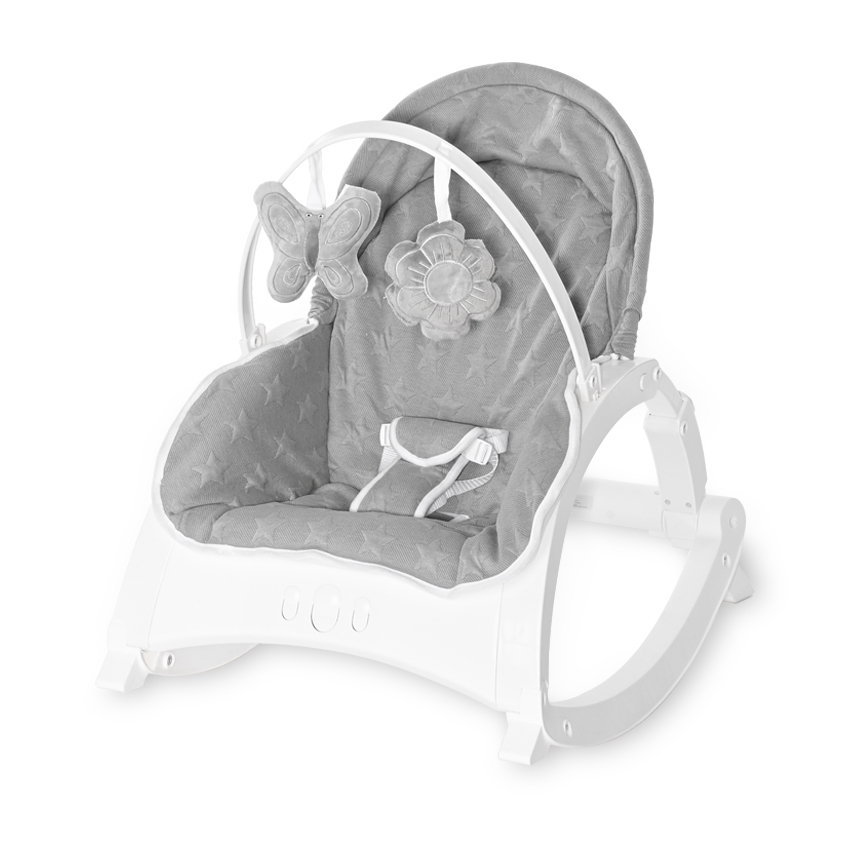 релаксиращо люлеене,предпазни коланчета,компактен, лек и лесно преносим,отстраняем гриф с играчки,фиксиране на люлеенето,функция 3в1 – бебешки шезлонг, столче с табла, детски стол,позиция за почивка и игра – шезлонг, с монтиран гриф с играчки,седяща позиция – столче с отстраняема табла,използване на артикула като стол за порастнали деца,вибрираща функция – 2 степени,отстраняема пластмасова табла,природни звуци на птички,4 детски мелодии,2 броя батерии – 2D 1.5V /не са включени в комплекта/,пластмасова конструкция//Като шезлонг: